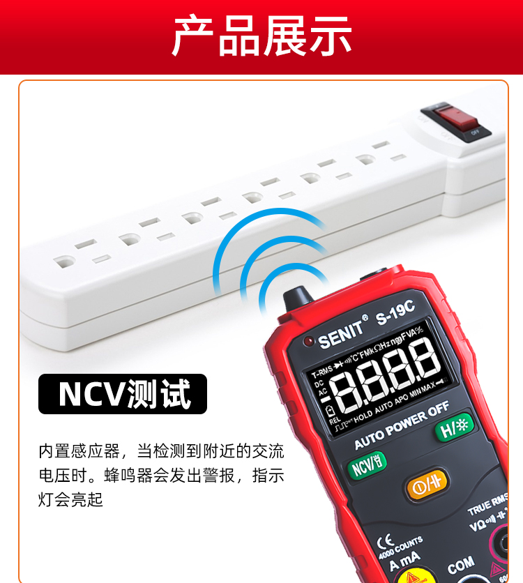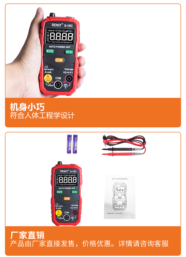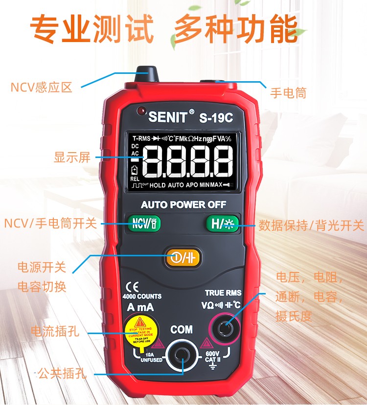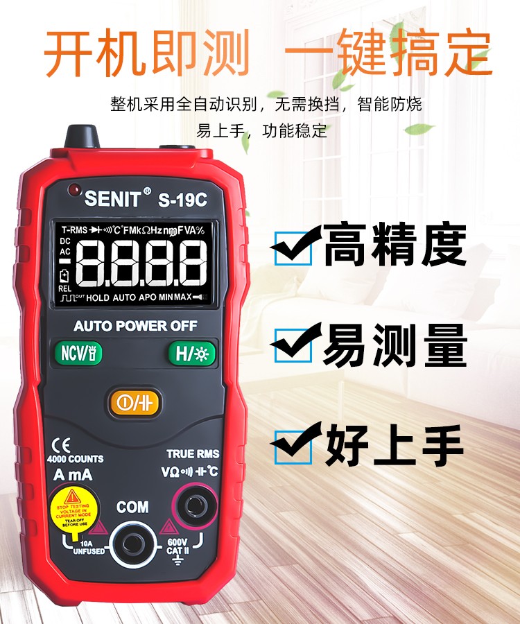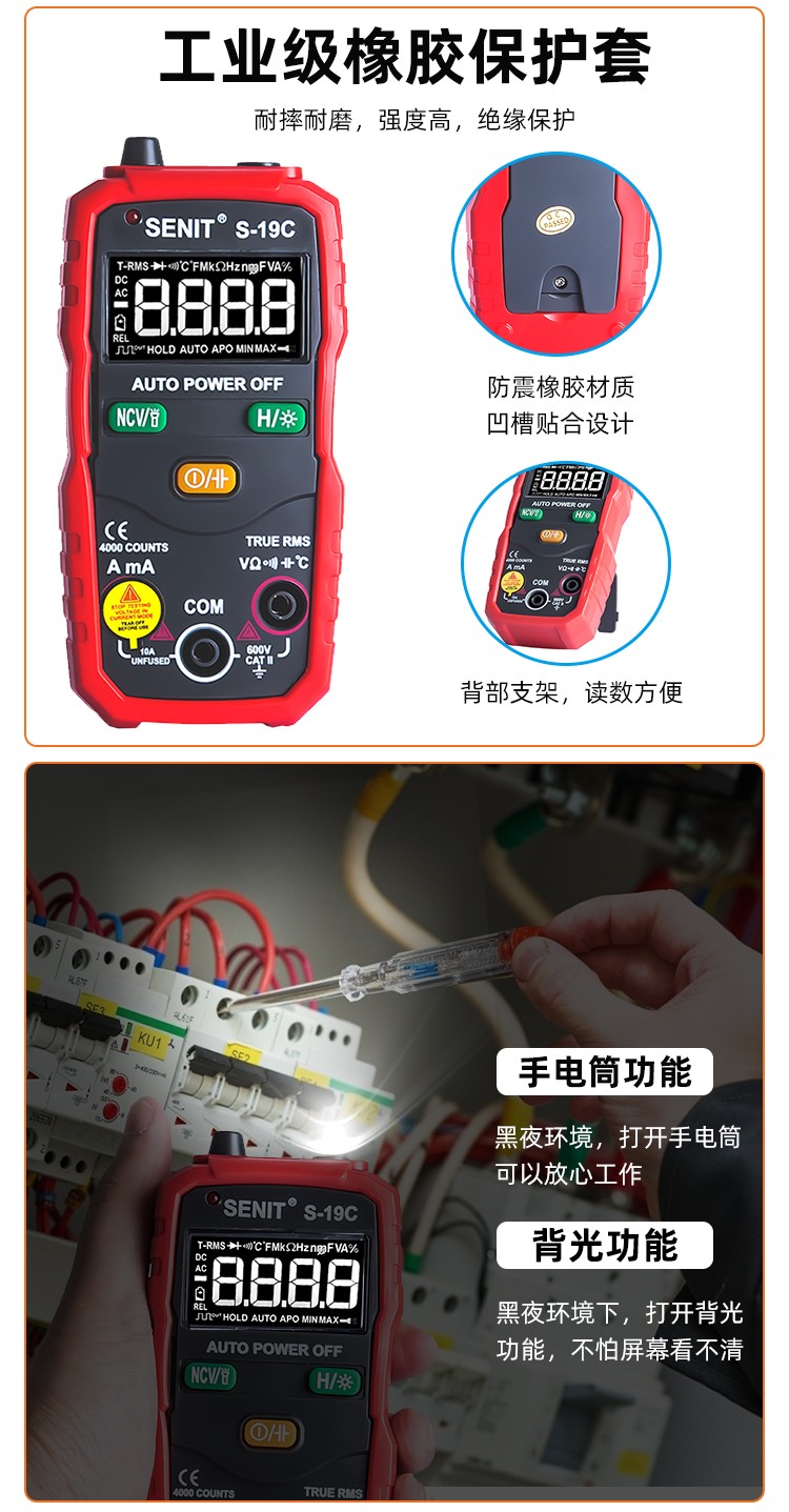 盛利德 SENIT S-19C 智能数显万用表自动量程万能表电工家电维修