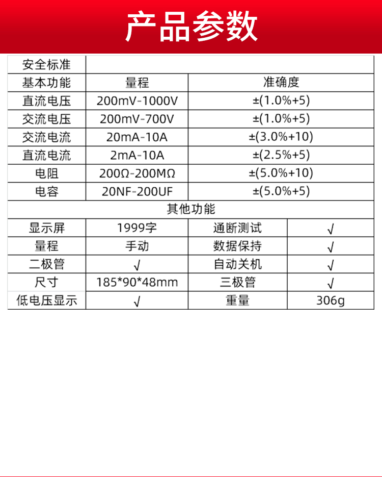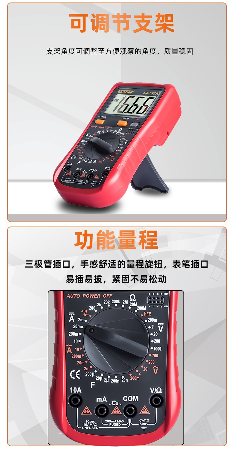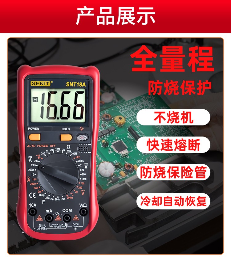 1. 全保护功能,防高压打火电路设计 2. 新型防震套,流线形设计,手感舒适 3. 大屏幕显示,字符清晰 4. 抗干扰能力强