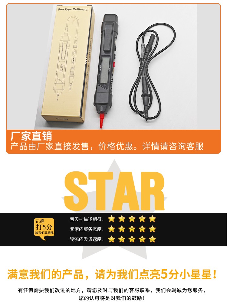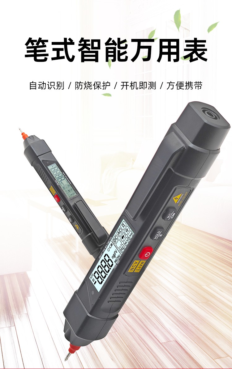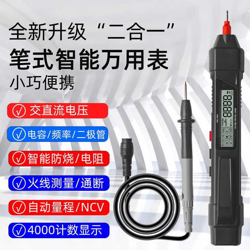 高精度智能测量,一触即发SENIT 盛利德 S8006 是专为电工、DIY爱好者和维修人员设计的迷你笔式智能万用表。采用先进的数字技术,支持全自动量程切换,一键操作即可完成复杂测量。无论您是检测家庭电路、排查汽车故障,还是工业设备调试,这款多功能笔形万用表都能提供精准可靠的数据,帮助您高效解决问题。体积小巧如笔,便于随身携带,随时随地成为您的“电工好帮手”。
