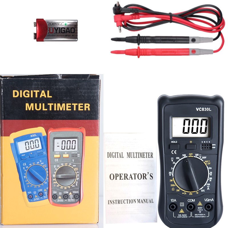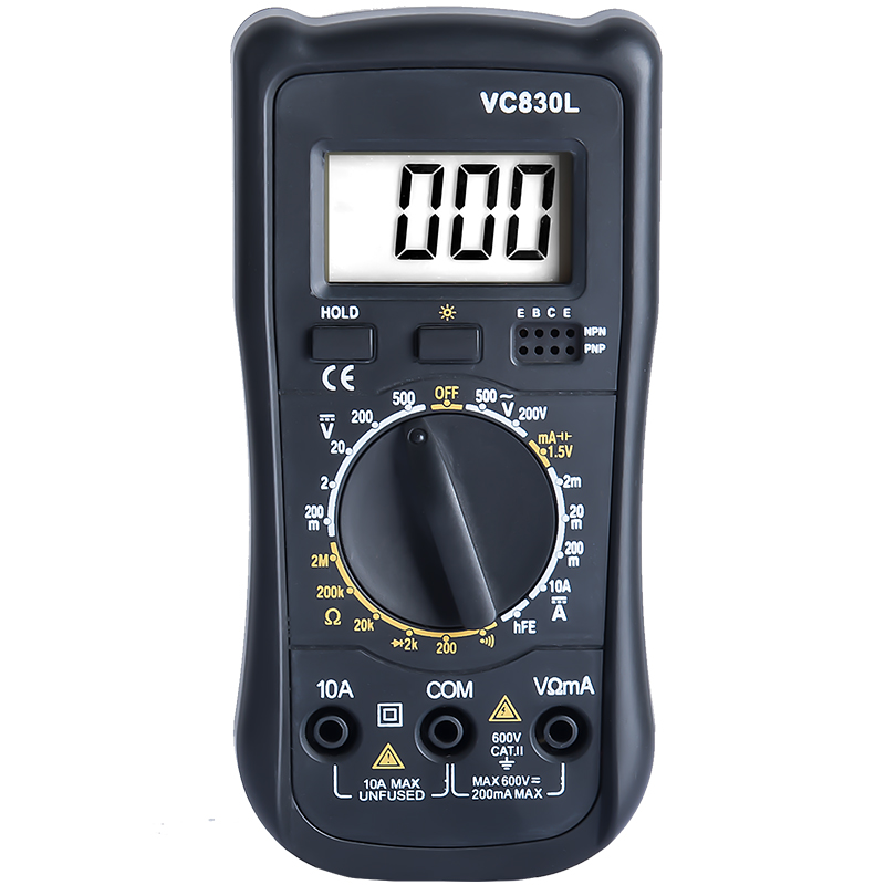Overview: VC830L is a pocket-size digital multimeter. It can be used to measure voltage AC, voltage DC, current DC, resistance, diode test etc. The pocket-size design is more convenient for family, factory or laboratory etc.