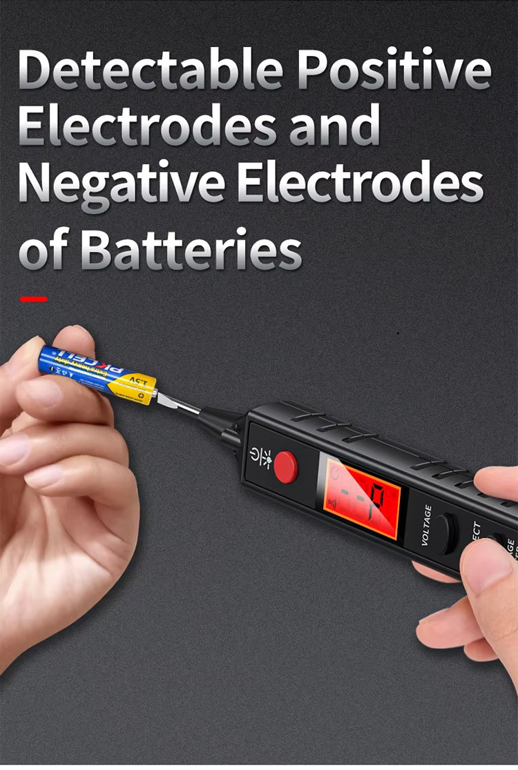 Equipped with a sturdy metal NCV probe for testing AC voltage,the test probe touches the conductor with AC voltage,and the voltage reading will show on display.To obtain more accurate values,it is recommended not to wear gloves when using.