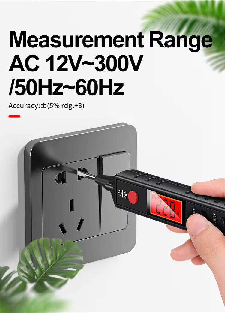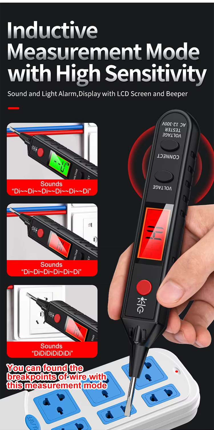 AC Voltage Measurement Range 12V~300V Digital Voltage Tester Pencil Wire Breakpoint Finder Detector with Sound and Light Alarm